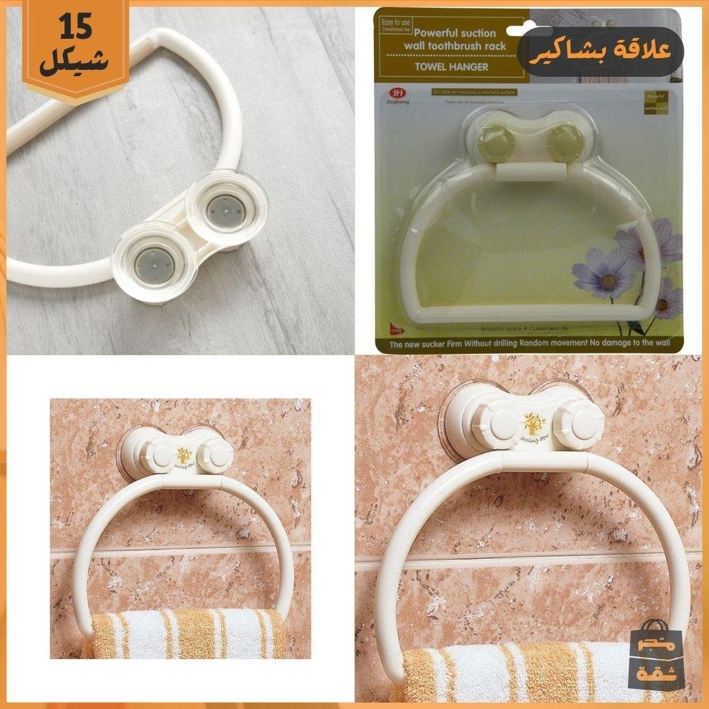 علاقة مناشف بلاستيكية يتم تثبيتها عن طريق لاصق مرفق مع المنتج