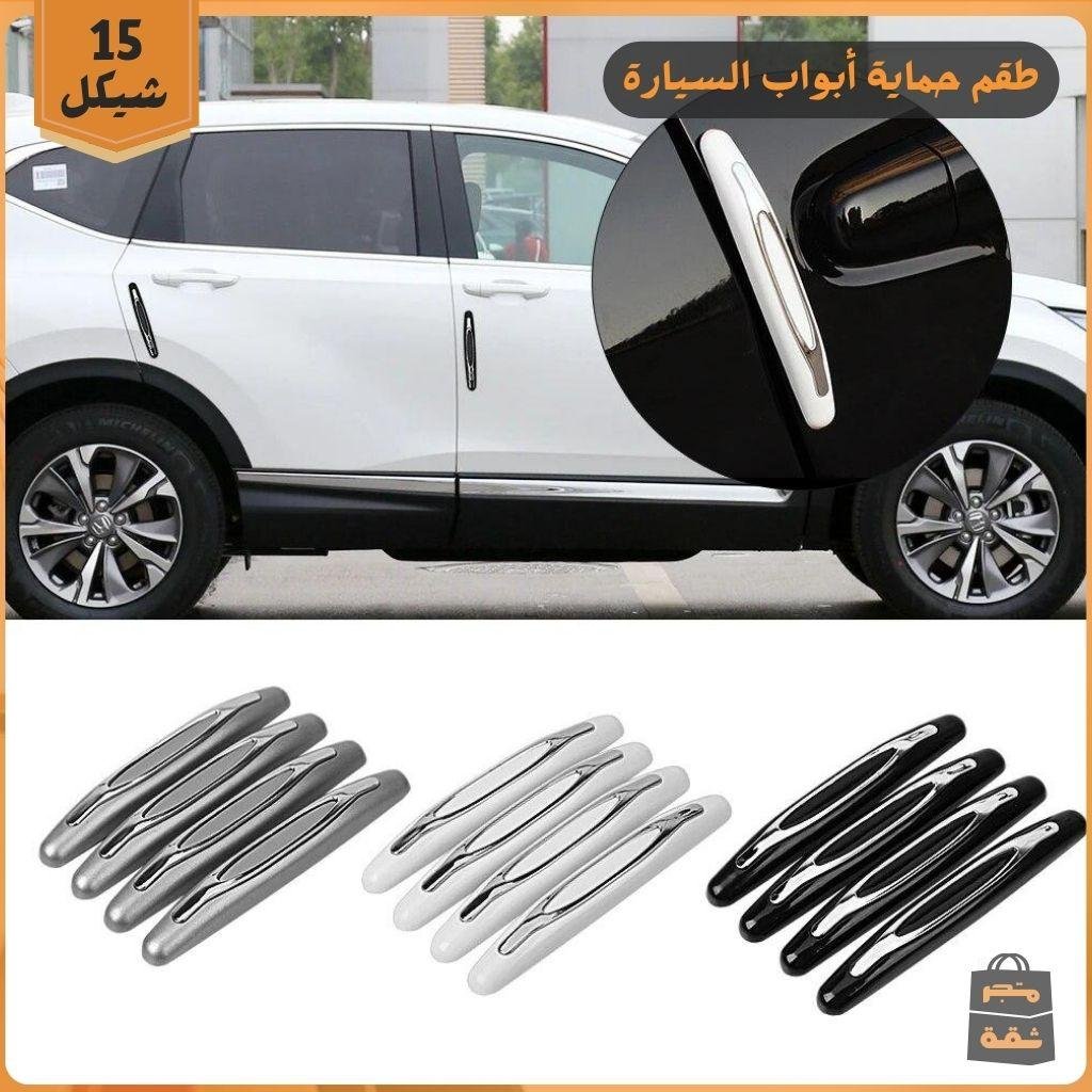 تحمي السيارة من الخدوش والاحتكاك. تُثبت بسهولة بواسطة لاصق ذاتي قوي. مكونة من 4 قطع. مقاس القطعة الواحدة حوالي:11.4 × 1.7 سم متوفر باللون الأبيض والأسود.
