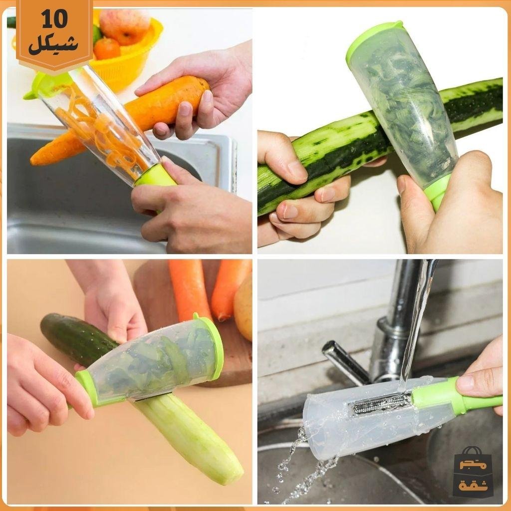 قشارة خضراوات يدوية مع وعاء لتخزين القشر.