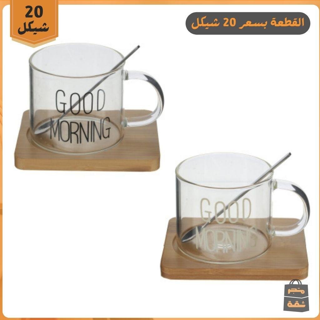 كوب GOOD MORNING واحد مع كوستر خشبي