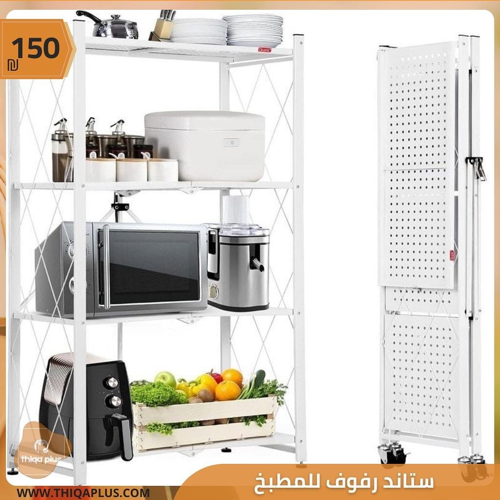 مصنوع من المعدن الثقيل مقاوم للصدأ. مكون من أربعة رفوف. يتحمل وزن ١٥٠ كيلو. حجم كبير وجذاب. ديكور مميز جدًا ومرتب في المطبخ. القياسات: 126×71×34 سم.