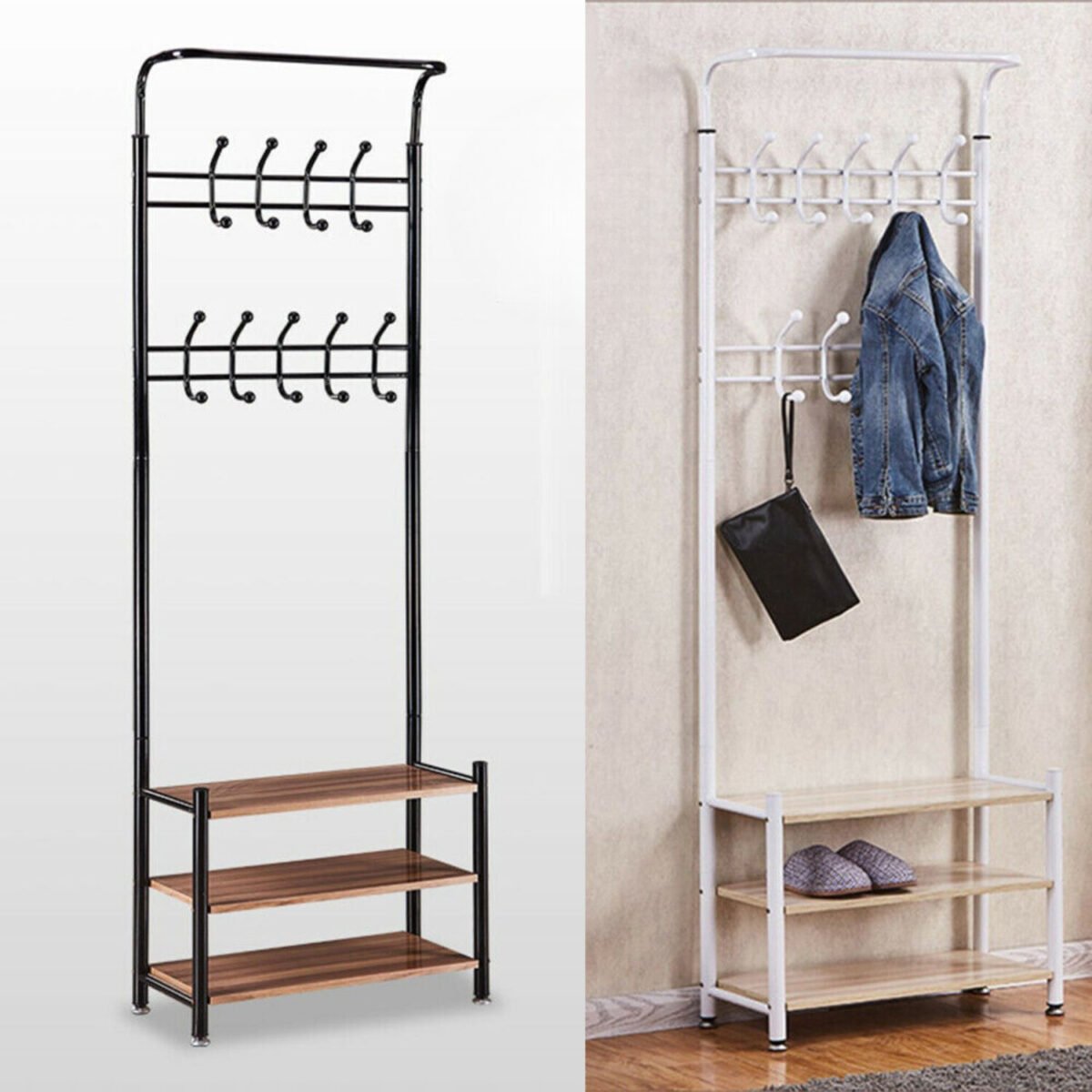 מתלה בגדים עם מדפי נעליים