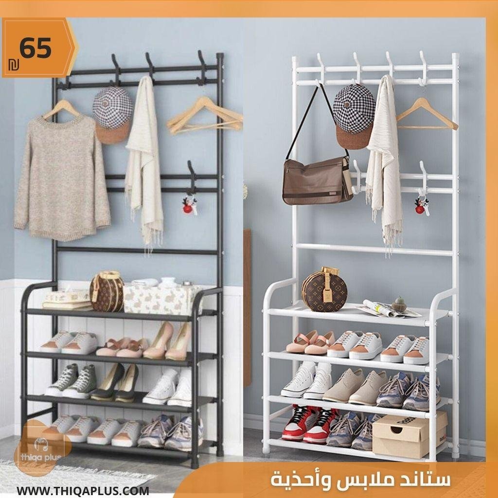 ستاند أحذية وملابس بـ 4 رفوف مع علاقات، مصنوع من المعدن باللون الأبيض أو الأسود، ويأتي بالقياسات 170x80x26 سم. يتميز بتصميم عملي يسهل التركيب والاستخدام، وتصميم أنيق يتناسب مع أي ديكور منزلي. يعتبر حلاً مثالياً للمداخل والقاعات؛ حيث يوفر مساحة تخزين إضافية ويساعد في الحفاظ على ترتيب المكان بشكل مرتب ومنظم.