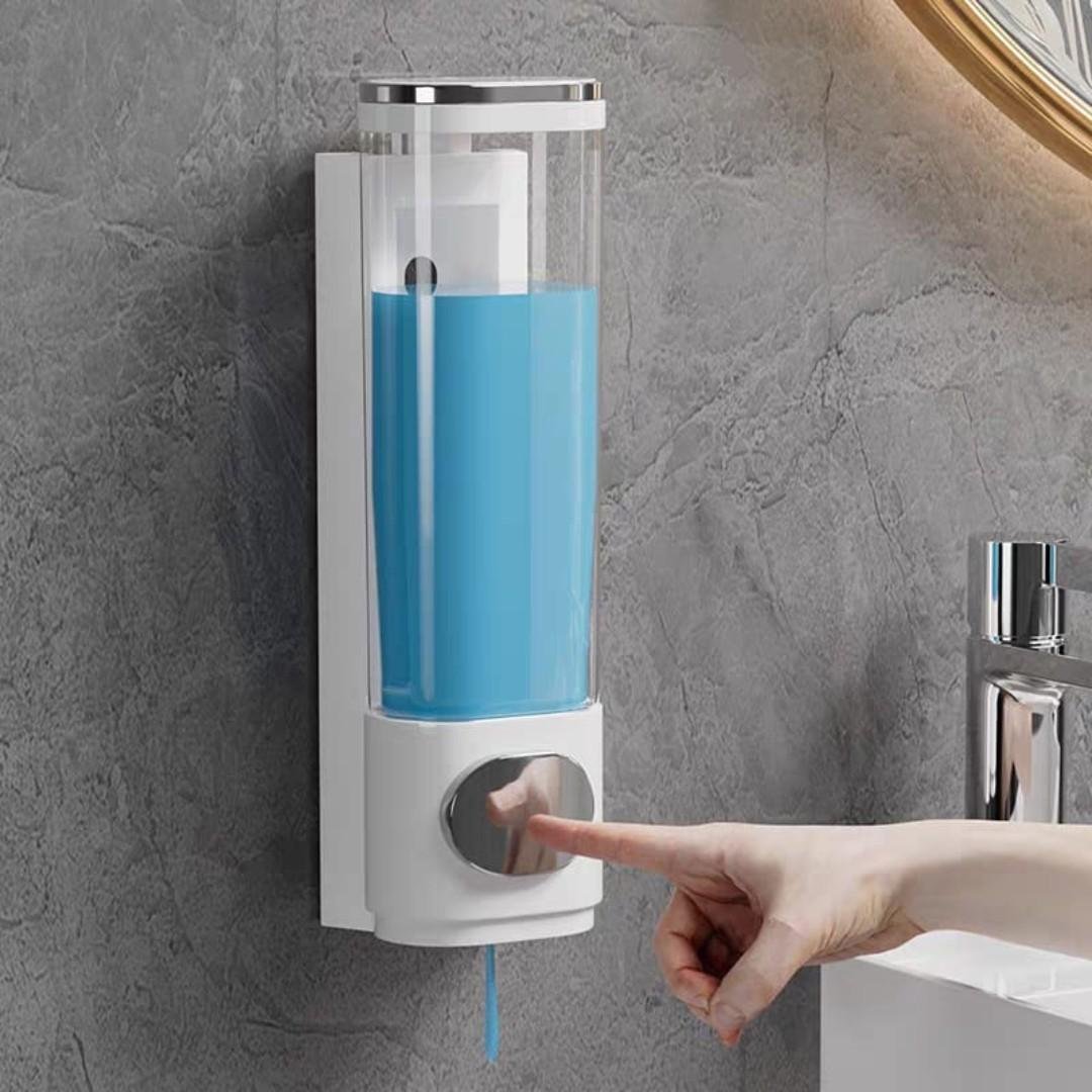 موزع صابون سائل يثبت على الحائط، مصمم للاستخدام في الحمام أو المطبخ.