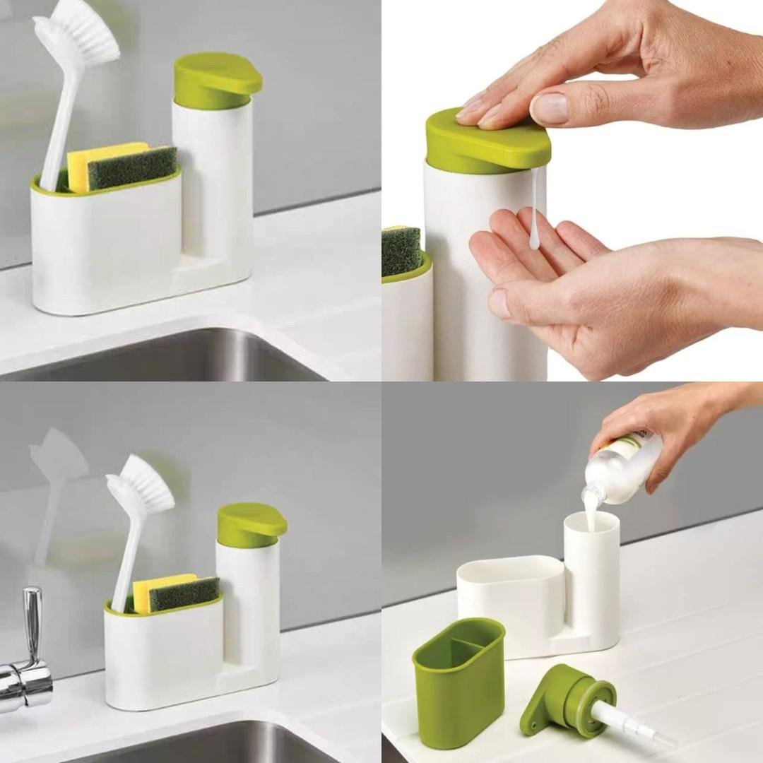 ✅ حامل لفرشاة التنظيف والإسفنجة: يوفر مساحة منظمة لتخزين فرشاة غسل الأطباق والإسفنجة، مما يساعد على تجفيفها والحفاظ على نظافة سطح الحوض.